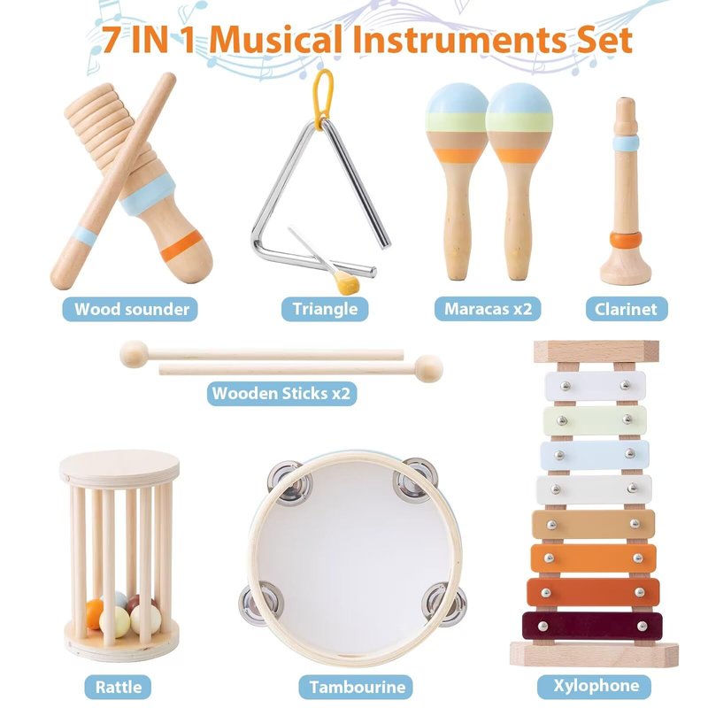 - 【Safe Materials】This toddler musical instruments are ideal wooden toys designed specifically for children aged 1-3. Crafted with safety as a top priority, they are 100% BPA-free, non-toxic, and effortless to clean. All items rigorously adhere to stringent CPC/ASTM standards, guaranteeing they are not only safe but also early educational toys suitable for both boys and girls aged 1-3.
