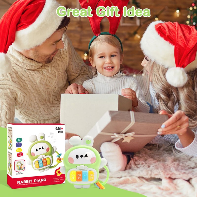 Baby Musical Toys 6-12 Months, Rabbit Piano for Baby Musical Toys for Toddlers 1-3, Busy Board with Music & Light, Birthday Toy for Infant Toddler 1 Year Old Boy Girl Gifts (Green)
