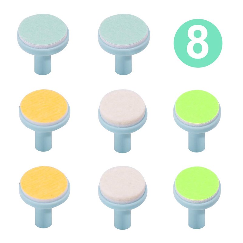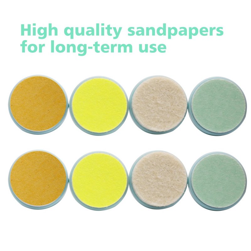 This set contains of 8 replacement pads baby nail file replacement pads. It will help you to use your baby nail file for a longer time. 2 orange grinding heads(Ultra-Fine): For 0-3 months babies. 2 teal grinding heads(Fine): For 4-11 months babies. 2 Green Grinding heads(Rough): For 12+Months babies. 2 Soft Polishing Heads: Polishes nails and removes dirt, dead skin. Choose suitable pad based on your baby's nail and age. Safer baby manicure set that won't damage cuticles or soft nail beds.