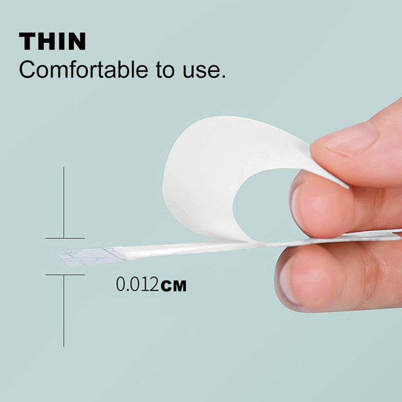 Peel off the adhesive tape from the side, and stick it to the navel, then peel off a layer of transparent plastic paper.