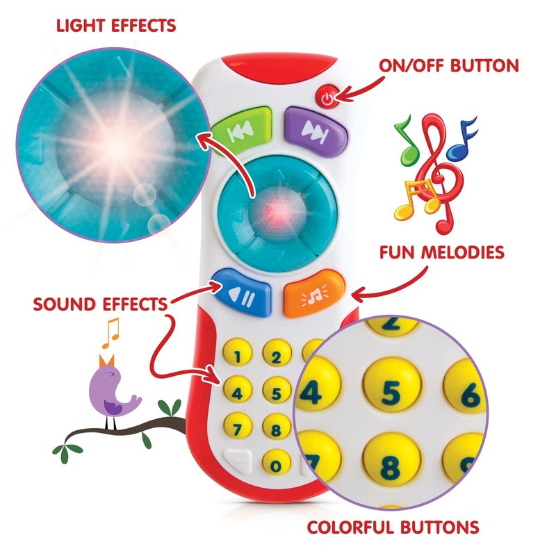 - MUSICAL LEARNING TOY ON-THE-GO – Suitable for ages 3 months and up, this fun toy remote control is a great gift for any occasion from a baby shower to a first birthday. Small enough to fit in a diaper bag, it’s a great toy to pull out to distract a baby or toddler when you’re on the go.