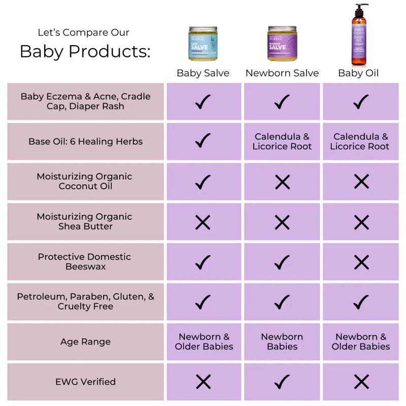 - This salve is carefully crafted using the utmost care and trusted INGREDIENTS such as organic calendula, burdock, and coconut oil, to yield an effective balm for your baby. NOTE: If you suspect a sensitivity to coconut oil, please try our coconut free Newborn Salve. It's not just for newborns!