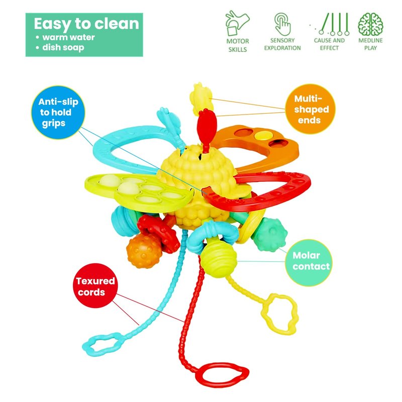 - Easy To Clean: Sensory toys for babies aged 18 months must be thoroughly disinfected before use. The baby teether toys can be cleaned with water or soapy water and are made of heat-resistant materials that can be disinfected in boiling water, ultraviolet light, or steam