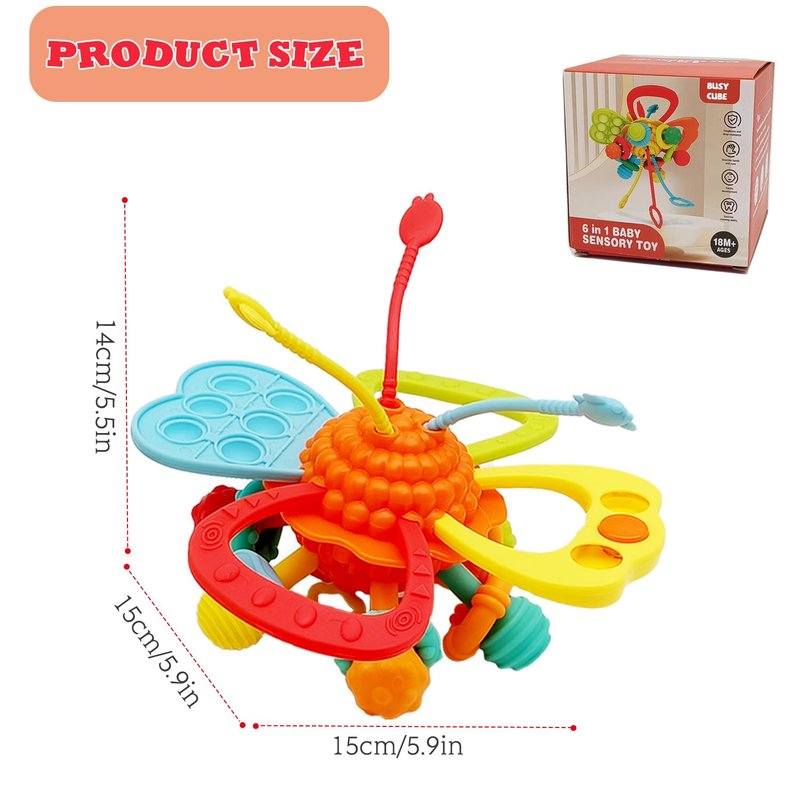 - Sensory Developmental Toys : With its bright and vivid colors, this toy instantly captures your baby's attention and encourages them to reach and grasp. As your baby's motor skills develop, they'll learn to hold and shake the toy with ease. The different textures and patterns provide a stimulating touch that helps with sensory development of babies for 18+ months.