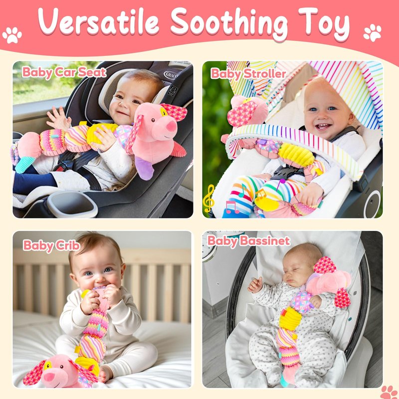 - Versatile Sensory Toys: The newborn girl toys features 3 different sounds: crinkle paper, bi-bi sounder hiding in the pages, built-in music button. You can use our rattle toys to soothing the crying baby's emotions at home or on the go long trip. A comforting cuddle buddy provides a variety of soft music and sensory play and accompany the baby to sleep, giving the baby a certain sense of security. Perfect Christmas gifts for baby boys girls 12-18 month old