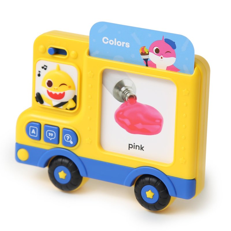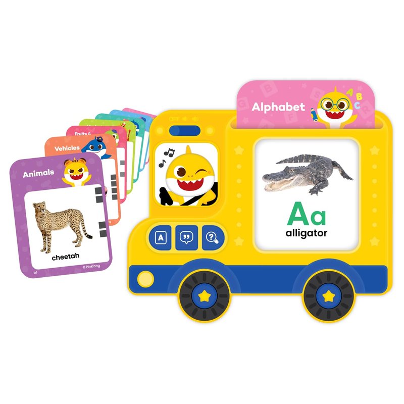 - Explore first words through Baby Shark's Flash Card Learning Bus Sound Pad! This educational toy is perfect for toddlers, aiding in speech development and teaching basic vocabulary with correct pronunciation, comprehension, interactive quizzes, and songs.