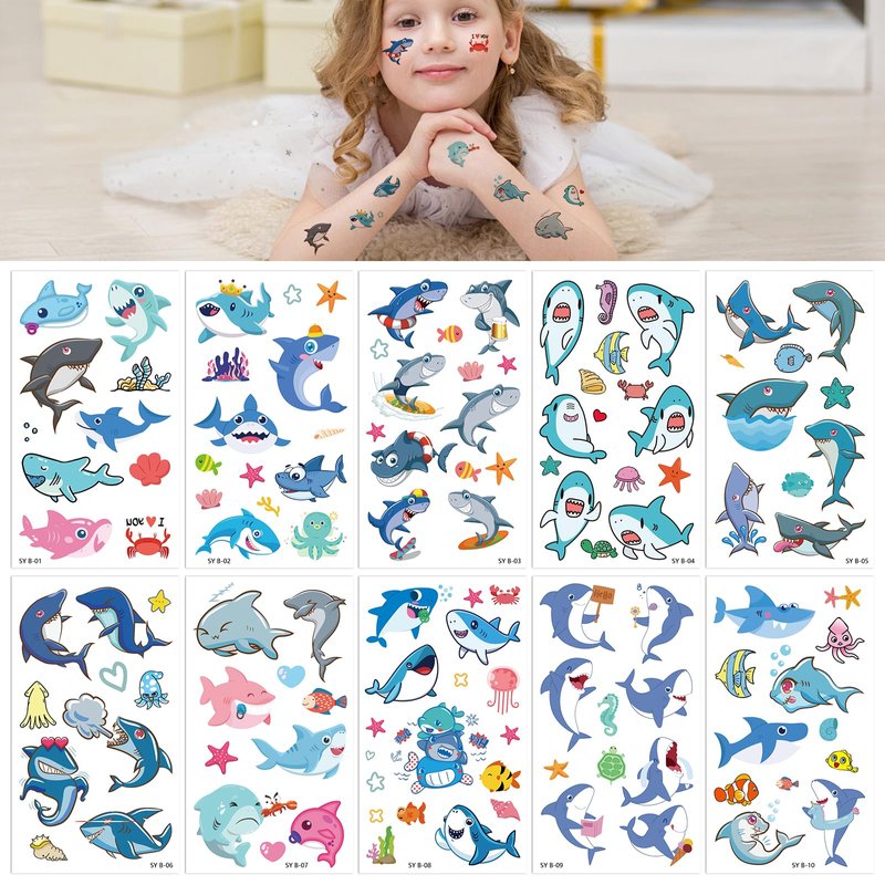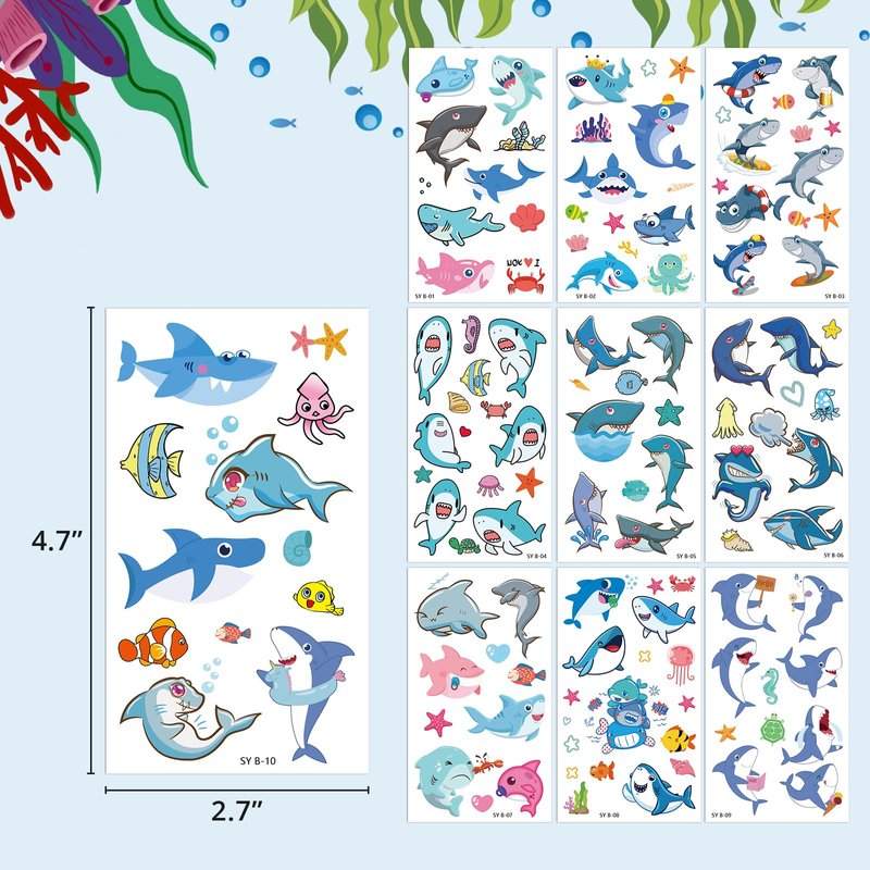 Baby Shark Temporary Tattoos Sticker 10 sheets Cute Sea Shark Tattoo Stickers for Party Supplies, Waterproof Tattoos