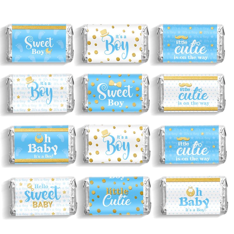 - Suitable size: our mini candy bar wrappers measures approx. 2.6 x 1.4 inches, suitable size to wrap your candy bars to create adorable baby shower party decorations, you could paste them on the candy, chocolate, cards and more; Please confirm the size before purchasing