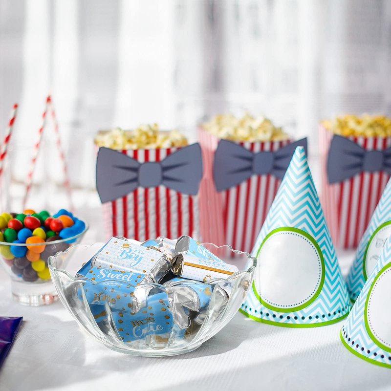 - Cute elements: our baby shower mini wrappers are designed with colors with lively classic baby shower patterns; Catching the attention of your guests, giving them nice visual enjoyment