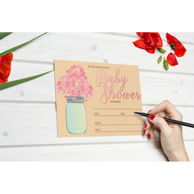 Baby Shower Invitations - 25 Baby Girl Shower Invites & Envelopes (Floral Jar Pink)
