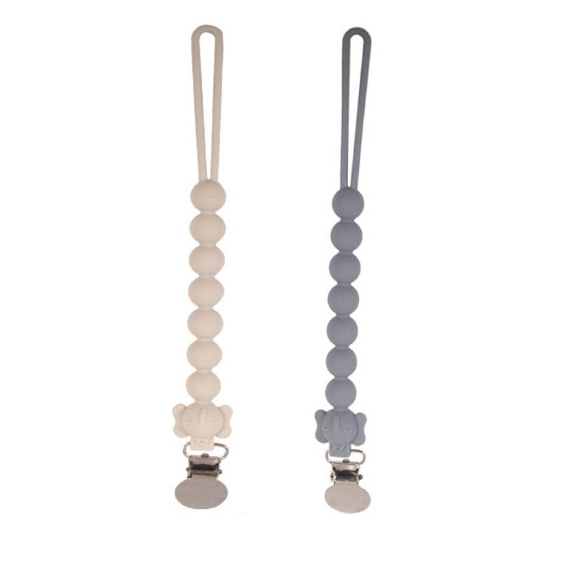 The Package Includes: 2 x Pacifier Clip Holder (Beige + Gray)