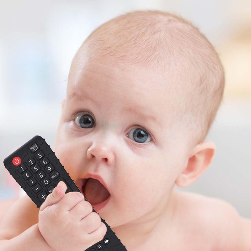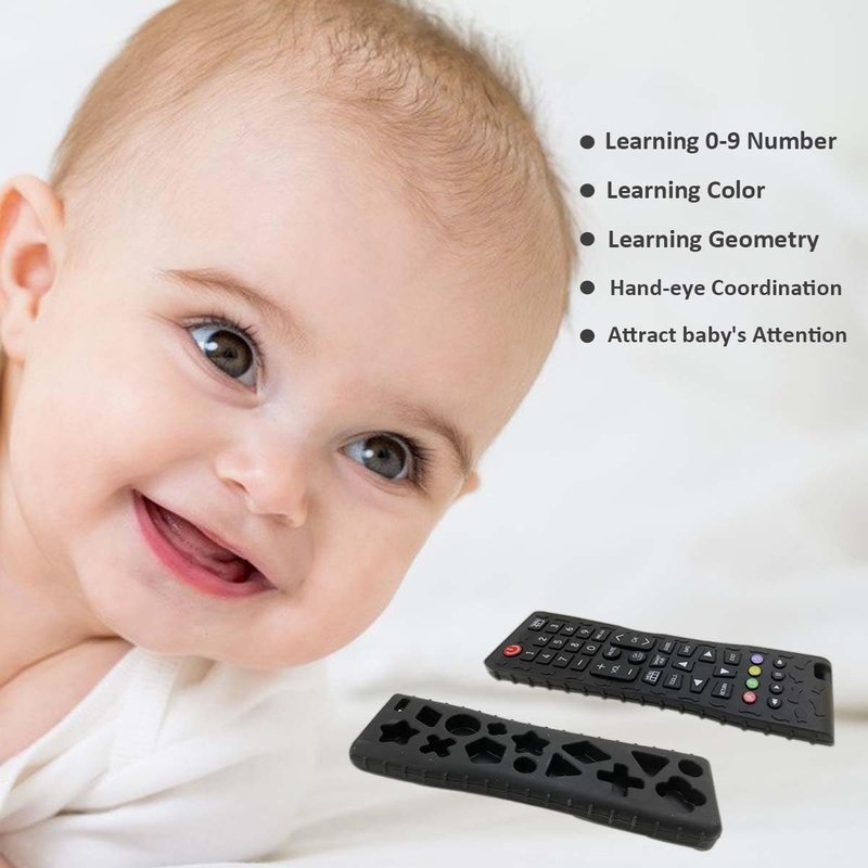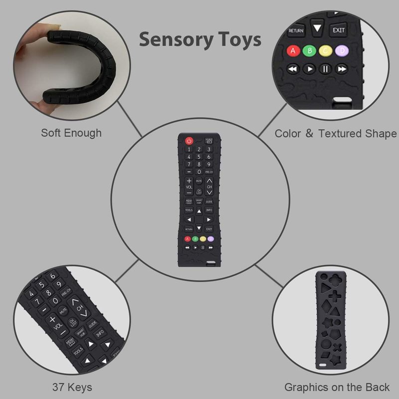 - [Reality TV Remote Control Modeling]--This TV remote control teether toy with 37 keys. The remote control toy look like a real TV remote, let baby have their own remote control. Avoid children playing with real remotes.