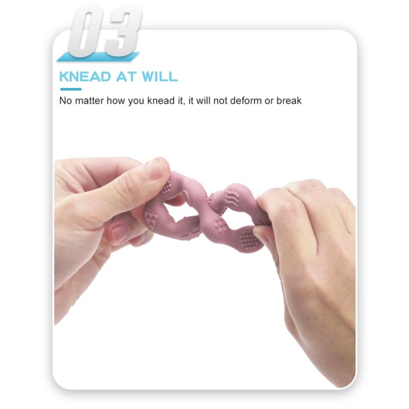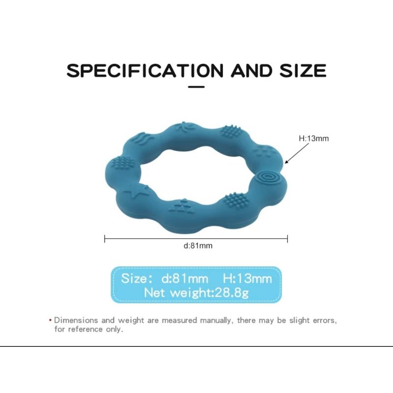 Our teething toy is perfectly designed for your little ones that are teething. Great donut shape ring. Massages your little ones gums, soft silicone, easy to carry !