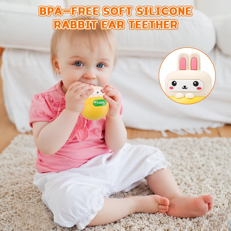Baby Teething Toys BPA-Free Bunny Teether for 6-12 Months Baby Rattle Roly Poly Toys for Infant 12-18 Months Rabbit Tumbler Toy Gifts for Toddler 1 2 One Two Year Old Girls Boys