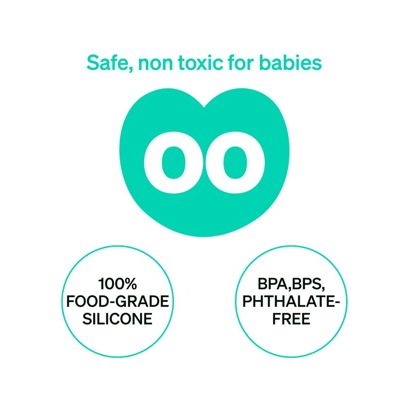 - DURABLE AND NON-TOXIC: Made from BPA-free, BPS-free, phthalate-free, 100% food-grade silicone. This silicone teether and baby toothbrush ensures safe use as a teething ring and for applying baby toothpaste and gels for babies over 6 months.
