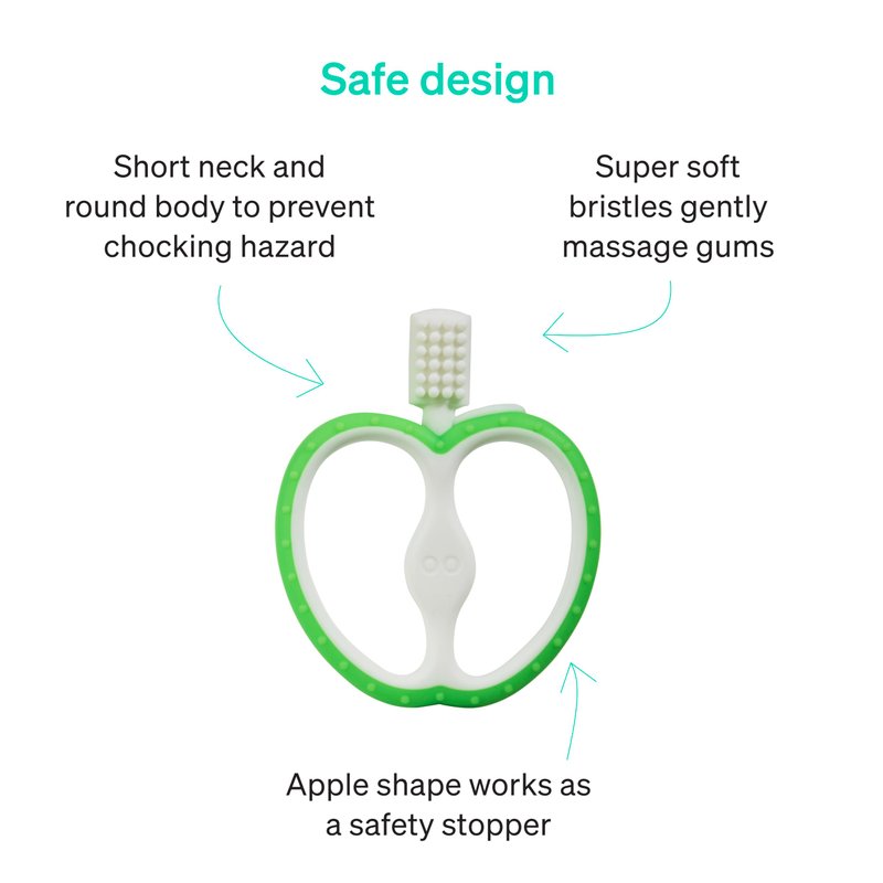 - SAFETY FEATURES: The apple-shaped handles work as a safety stopper, preventing the infant from putting the toothbrush too deep. It’s a great addition to any baby registry, ideal for baby teething relief and baby teethers 0-6 months.