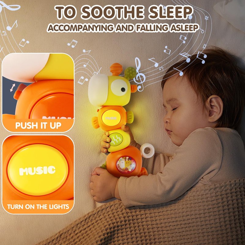 - 4-IN-1 NEW UP-GRADE TEETHER TOY: This baby teething toys is specifically designed for infants aged 0-6 months, incorporating various activities such as grasping, shaking, biting, and spinning to stimulate the baby's curiosity. The adorable giraffe shape and bright colors, along with soft lighting, provide visual stimulation for the baby while they play.