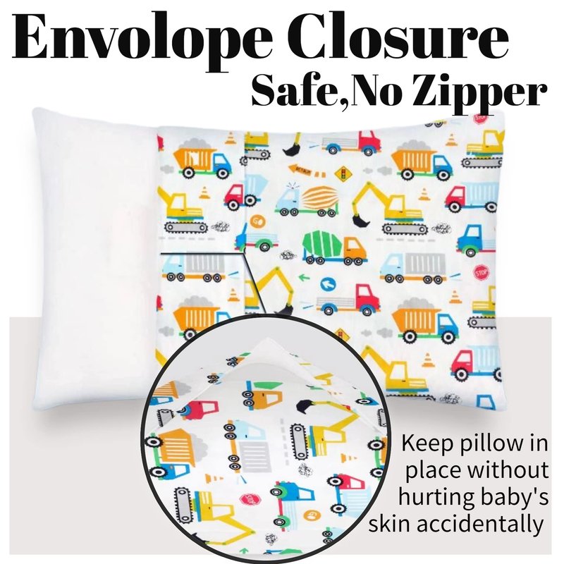Baby Toddler Pillow Cases Trcuk Pattern - Child Pillowcase Fit Kids & Travel Pillows 13 x 18, 14 x19 - Soft Cotton Pillows Cover Set of 2, Envelope Pocket, Durable Well Stitched, Boy Girl Crib Bedding