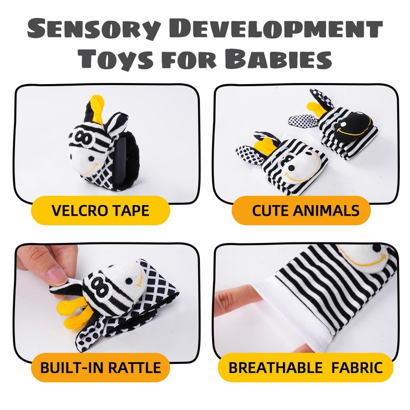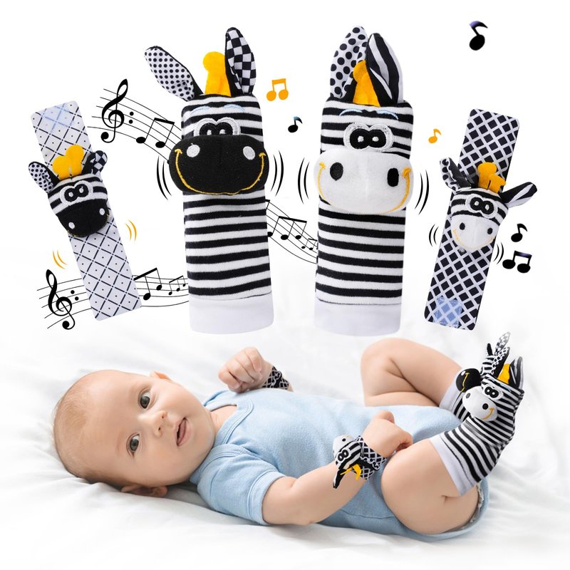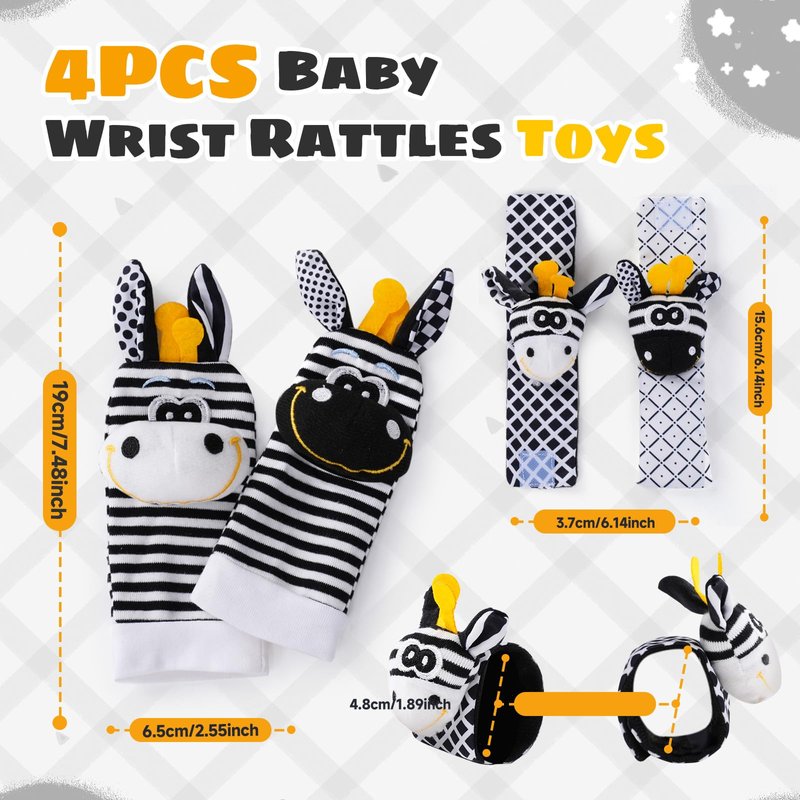 - EARLY DEVELOPMENT TOY :High Contrast Black and Withe Wrist Rattles for Infants Help Stimulate Baby's Visual Development, Hands Development,The bell and sound paper inside the socks rattles also help develop your baby's hearing