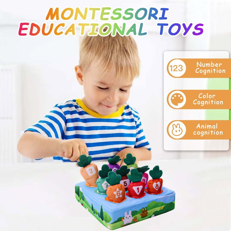 - Interactive Montessori Toys and Bath Toys:Montessori-inspired interactive toy for children babies 1-3 years old are great for baby learning colors. It includes 9 colorful carrots with numbers Designed for color recognition, shape classification and hand-eye coordination. 3 rotating suction cup toys feature cute cartoon shapes, doubling as sensory toy . Their strong suction cups firmly attach to the bathtub, turning bath time into a delightful and fun experience!