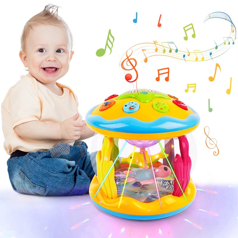 - 【Ocean Rotating Light Up Toys】The baby toys 6-12 12-18 months can play kinds of melodies, and the dolphin and turtle can rotate 360 degrees with beautiful lights, which build-up a wonderful undersea world atmosphere, stimulate toddler's unlimited imagination. It's easy for baby to press the top big button to make it play music and light the colorful lights.