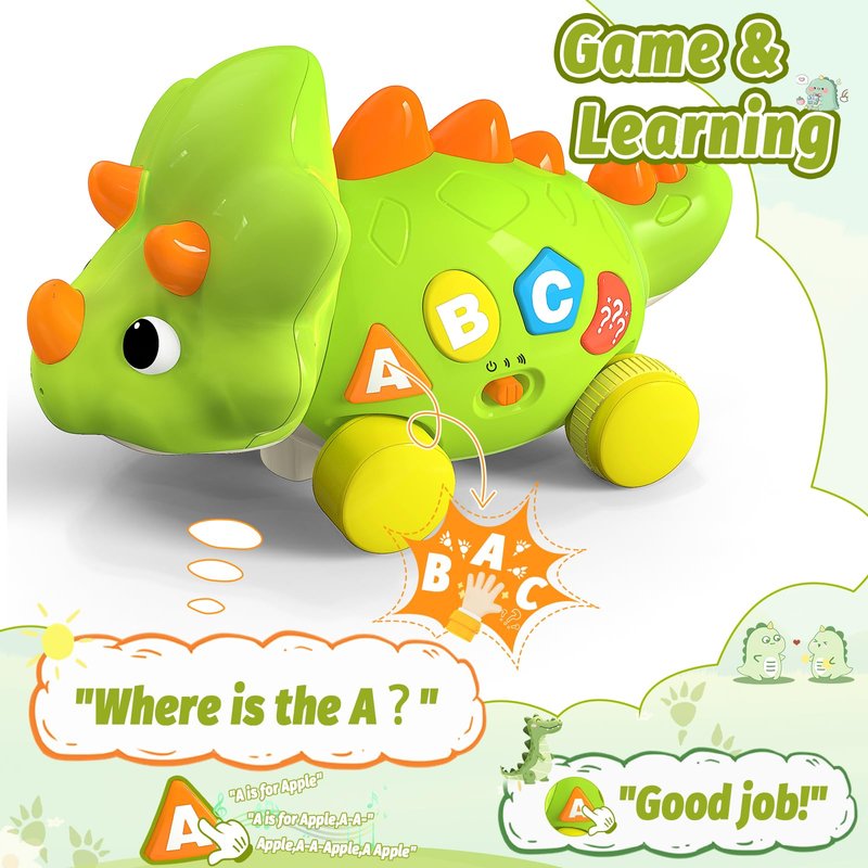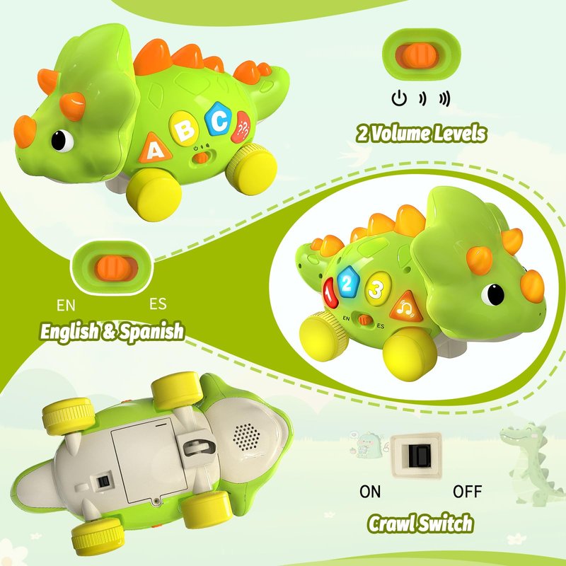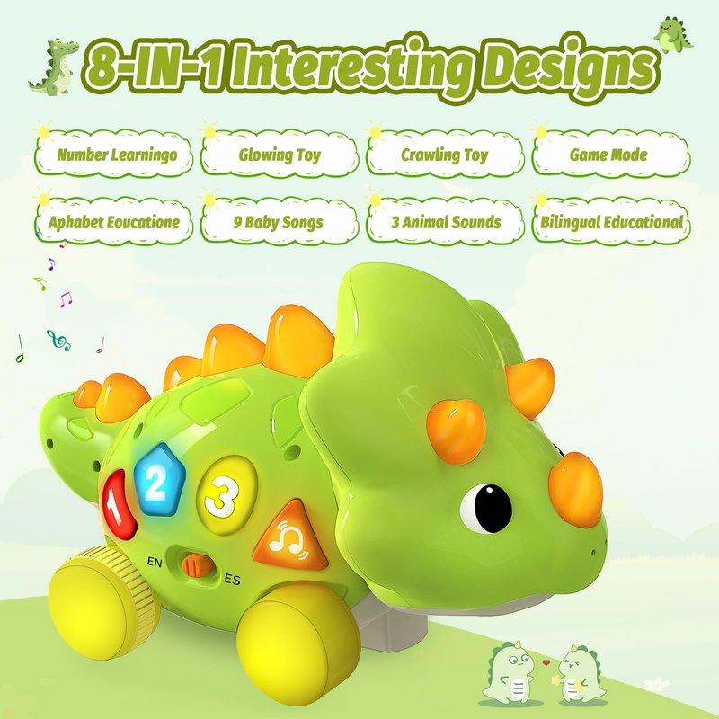 - 【8-in-1 Multifunctional Dinosaur Toy】: This all-in-one baby toys combines crawling, lights, music,obstacle sensing,Bilingual Education,letters, numbers, and interactive Q&A. Perfect baby toys for 6-9-12-18 months, ultimate gift for Christmas or birthdays, sure to delight 1 year old boys or girls alike..