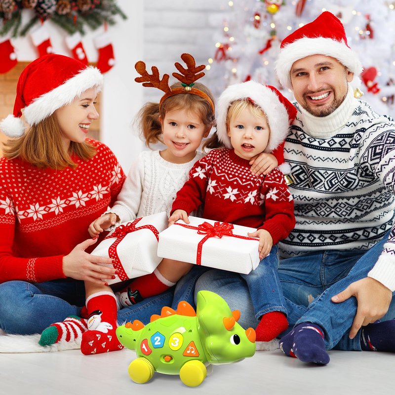 - 【Fun Musical Walking Baby Toy】: Press the music button to play 9 different lullabies, along with ABC songs for early language learning, all accompanied by glowing LED light, perfect for nighttime interaction with your little one, Toddlers who start to walk or run love pulling along the cute dinosaur around indoor outdoor. Equipped with multiple ropes, the length can be adjusted according to your child's height.