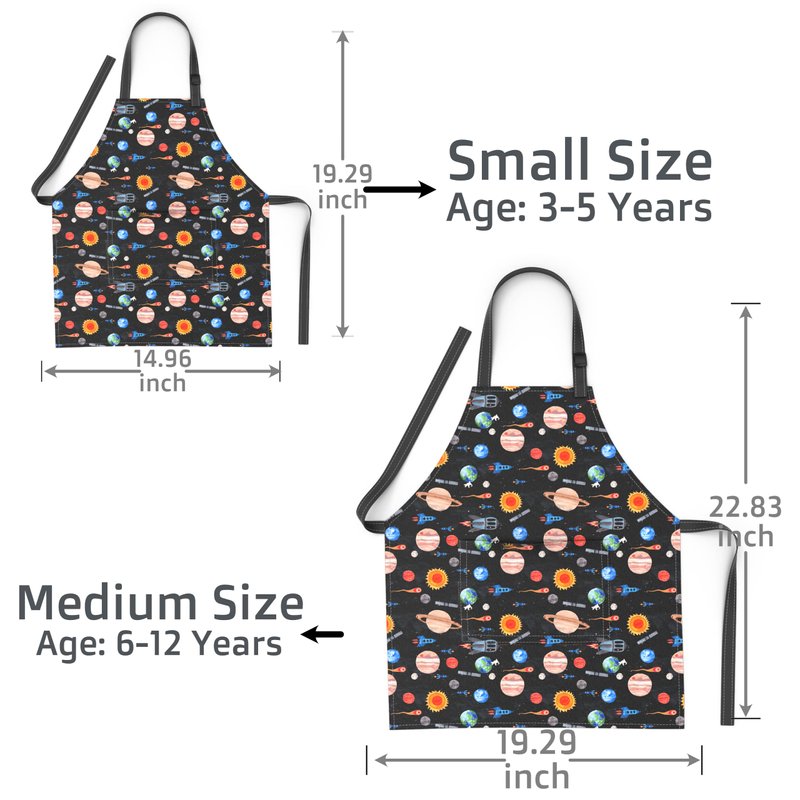 - MEDIUM CHILD APRON for girls and boys ages 6-12 years helps keep clothes clean and dry while painting or helping in the kitchen. Apron measures 22.83”H x 19.29”W with long straps for easy, secure tying.