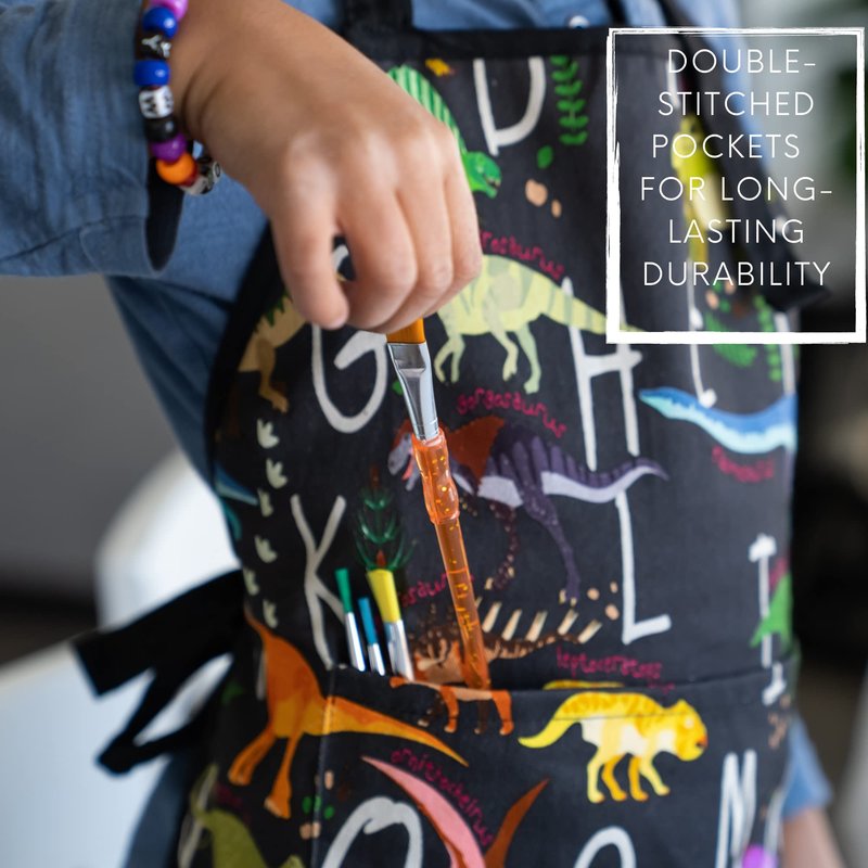 - EDUCATIONAL YET FUN – A to Z dinosaur kids apron, Let your little ones discover the name of the dinosaurs from A to Z and explore the extraordinary world of dinosaurs. play and learn about a dinosaur whose name starts with what letter with our kids aprons.