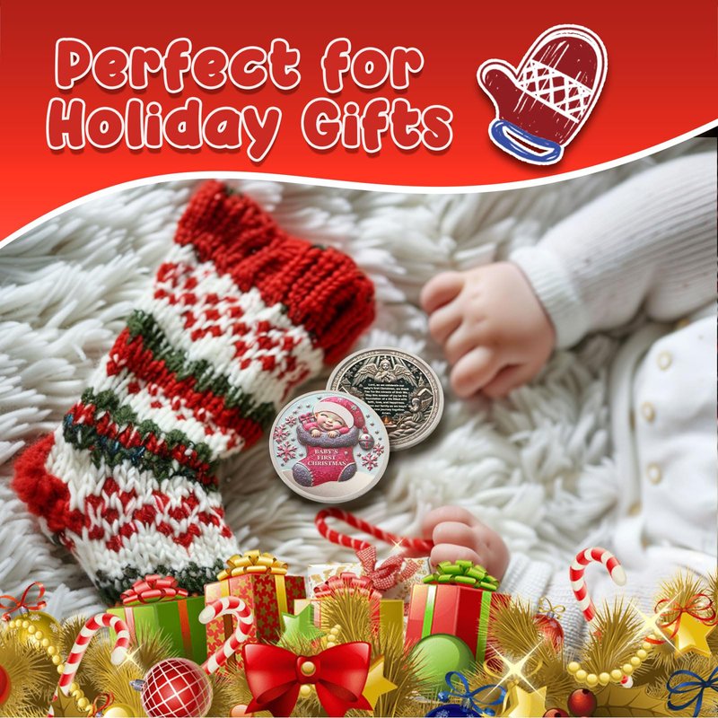 - Unique Christmas Gifts: This unique Christmas commemorative coin design combines a cheerful Christmas atmosphere with exquisite craftsmanship, and the joy of the holiday season seems to be just around the corner. The obverse and reverse sides of the Merry Christmas coin contain classic Christmas elements such as Christmas stockings, Christmas trees, snowflakes, log cabins and angels, creating a festive atmosphere and making it a unique Christmas gift for your baby