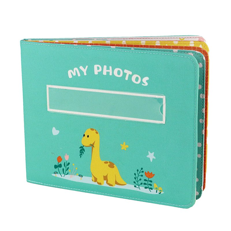 The fabric photo album for the youngest touches soft, the dinosaur theme pattern and colorful pages look cute and comfortable. It is best gift for the families and friends. The album holds 10 pictures - 4x6 inch. There is a transparent pocket on the cover can display baby's name card. It padded without sharp edges which is safe for babies.