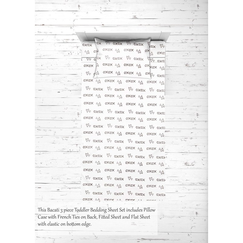 Bacati - Love Cotton Percale Toddler Bedding Unisex (3 pc Toddler Bed Sheet Set, Grey/White)