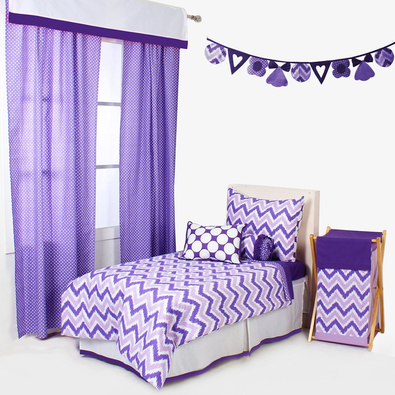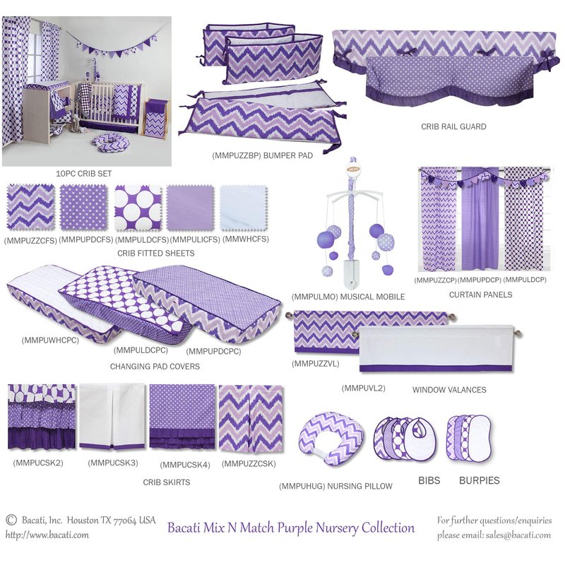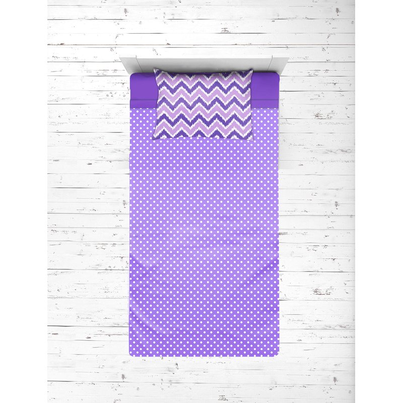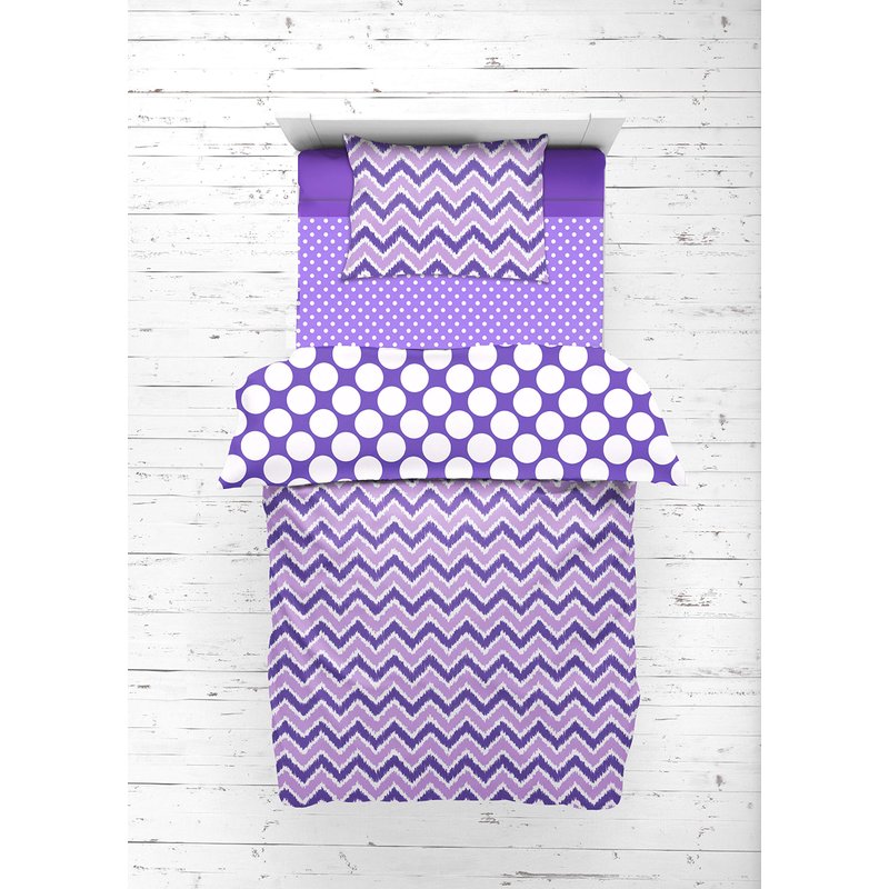 Bacati - Mix N Match Zigzag/dots 3 Pc Girls Toddler Bed Sheet Set Including Fitted Sheet, Flat Sheet and Pillow Case for US Standard Crib/Toddler Bed(Purple)
