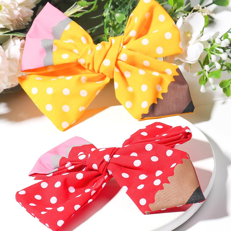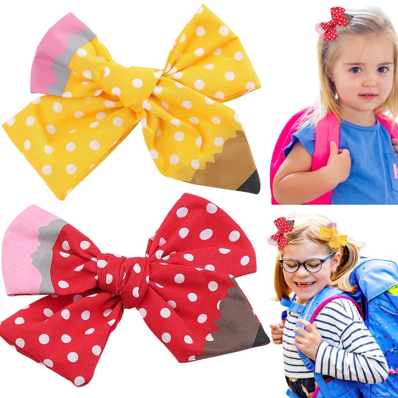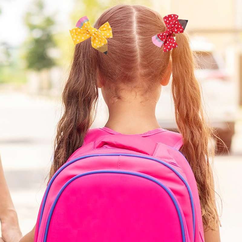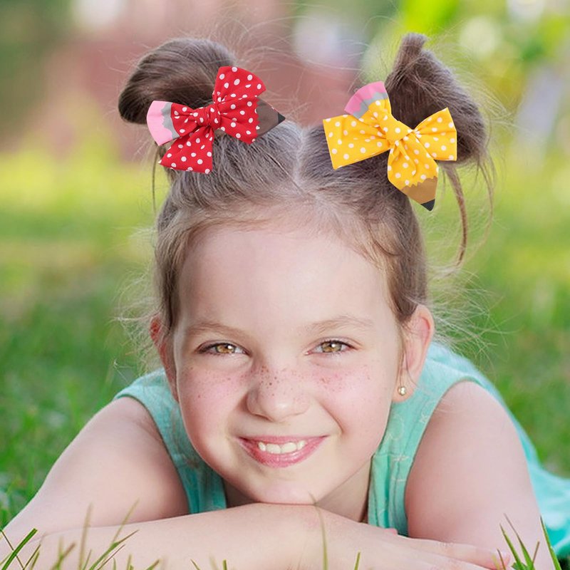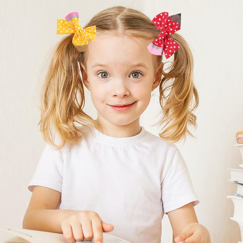 • [Hair Bows Clips Design] The pencil cheer hair bows hair accessories are designed wave point. The back to school season bow colors of this butterfly hairpin are yellow and red.