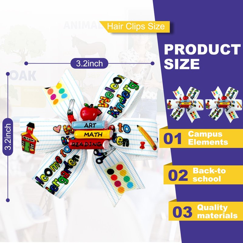 - 【Package Including 】You will get 2pcs back-to-school bows hair clips, measuring approximately 3.3x2.7 inches, suitable for women, girls, teachers, students, teens, toddler