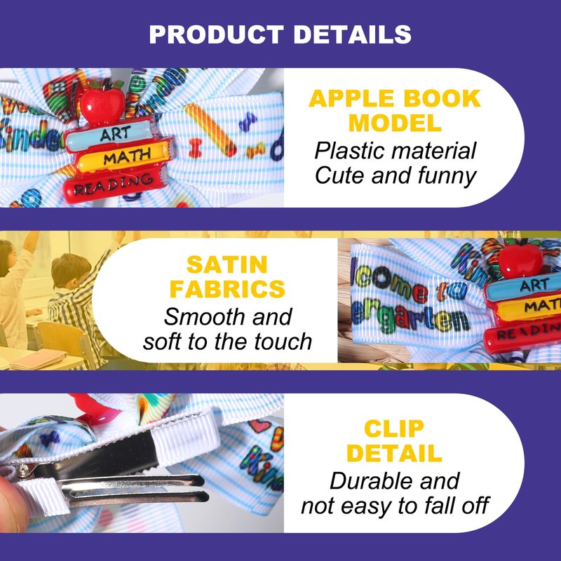 - 【Various Design】Our first-day-of-school girls' hair clips feature colorful hair bow designs decorated with a crayon, and pencil, cute and beautiful, exquisite and charming, perfect for decorating your hair and outfit for the school year, making you stand out from the crowds