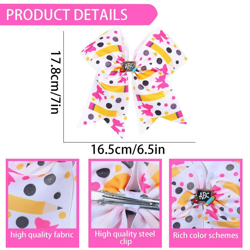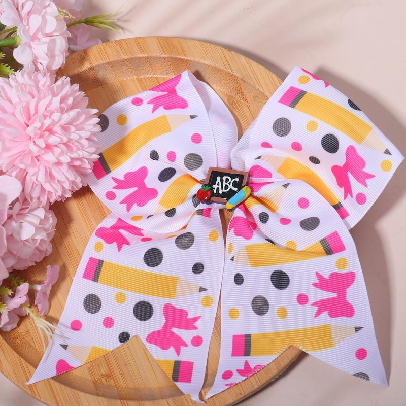 Back to School Hair Clips Cute Hair Clips Pencil Bows Hair Barrettes Blackboard Bow Hairpin Polka Dot Bow Hair Accessories Big Bow Hairpin White Pink Yellow 1 PCS