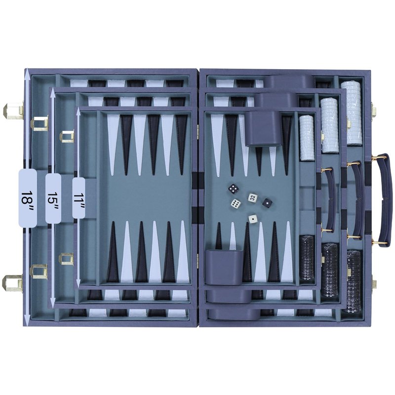 Backgammon Set - Classic Board Game with Premium Leather Case - Portable Travel Strategy Backgammon Game Set for Adults, Kids - Suitable as (11inch, Gray)