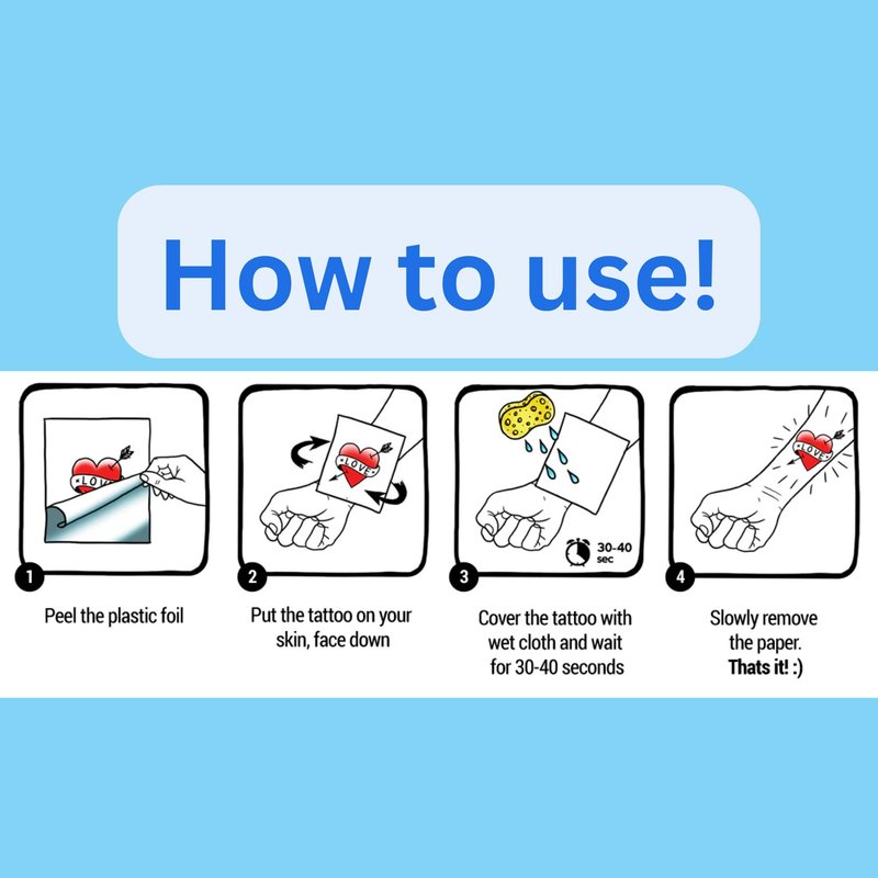 - Easy Application Process: Design the temporary tattoos for easy application, including clear instructions and possibly including application tools or accessories to simplify the process for users.