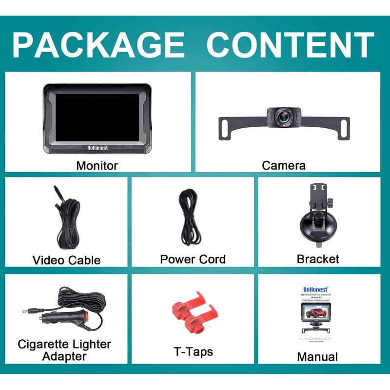- [ 2-Year Warranty]: DoHonest S01 backup camera with monitor offers lifetime technical support, 2-year replacement service, and a 30-day money-back guarantee for S01 front/rear view backup camera kit. Contact us if you have any questions or concerns.