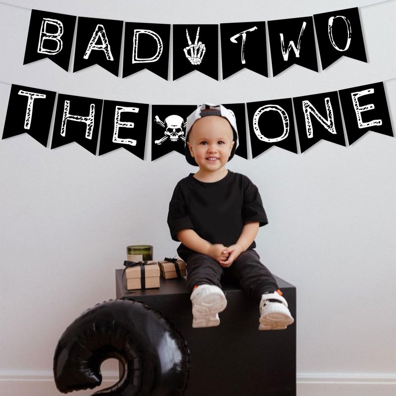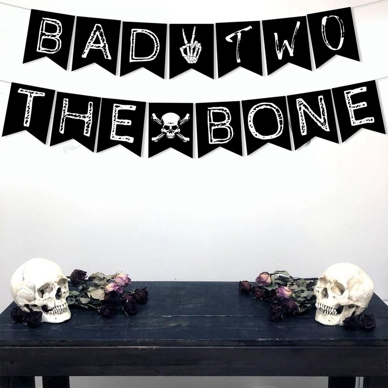 - Excellent Design: bad 2 the bone banner can be used by both boys and girls, suitable for 2 year old, unique and cool shape, can also be used for rock birthday parties.