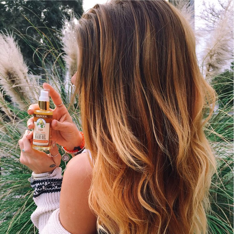 Badger - Argan Hair Oil w/Jojoba & Baobab, Moroccan Argan Oil Treatment for Dry Damaged or Frizzy Hair, Leave-In Conditioner, Organic Strengthening Moisturizer. 2 fl oz