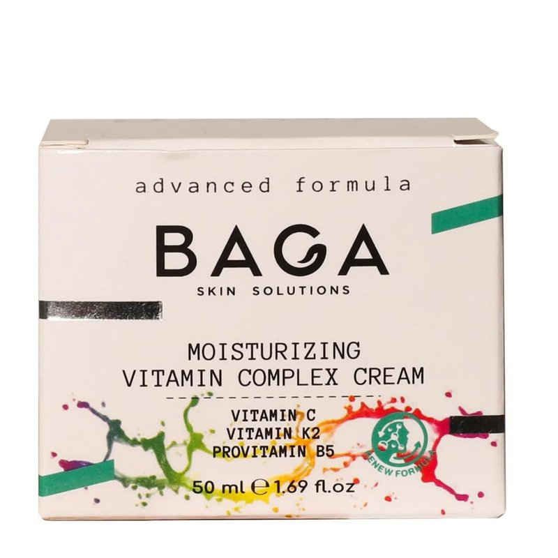 BAGA in radiant, youthful skin with Baga's Moisturizing Vitamin Complex Cream. This advanced formula harnesses the power of Vitamin C, Vitamin K2, and Provitamin B5 to nourish and revitalize your complexion. The rich, creamy texture melts into your skin, delivering a potent blend of vitamins that work in harmony to combat dullness, uneven tone, and signs of aging. Indulge in this luxurious cream and unveil a luminous, vibrant glow that radiates from within. With its skin-loving ingredients and targeted moisturizing properties, this vitamin complex cream is a must-have for anyone seeking a radiant, healthy-looking complexion. Pamper your skin with the rejuvenating benefits of Baga's Moisturizing Vitamin Complex Cream. Size: 1.69 fl oz (50 ml).