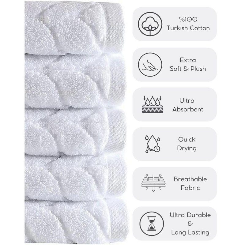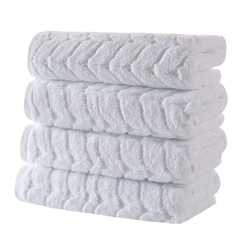 BAGNO MILANO 100% Turkish Cotton Jacquard Luxury Towel Set – Quick Dry Non-GMO Ultra-Soft, Plush and Absorbent Luxury Durable Turkish Towels Set (White, 4 Pcs Hand Towel Set)