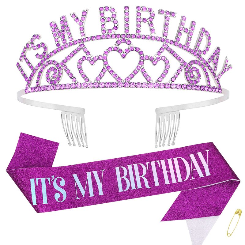 - The Perfect Birthday Party Kit: Perfect combination of “IT'S MY BIRTHDAY” sash and rhinestone tiara. It will makes you amazing and being the center of attention wherever you are