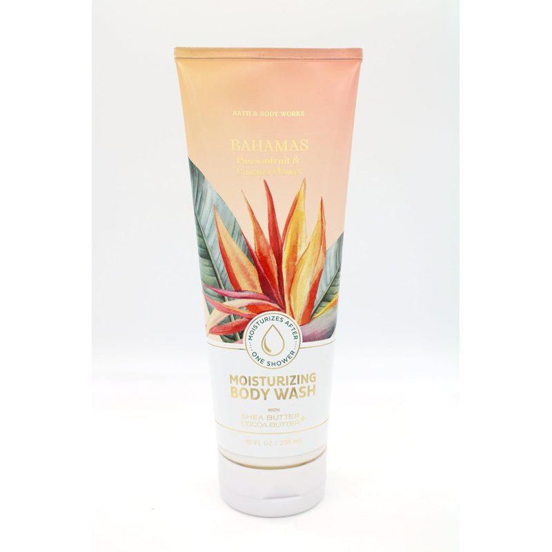 Fragrance Name: Bahamas Passionfruit & Banana Flower / Fragrances Notes: Passionfruit, Pineapple Leaves, Banana Flower / Size: 10 fl oz (295 mL) / Made with Vitamin E, Aloe, Shea + Cocoa Butters, Coconut Oil / Not Tested on Animals & Vegan / Dermatologist Tested / Made without Parabens, Sulfates, Artificial Dyes