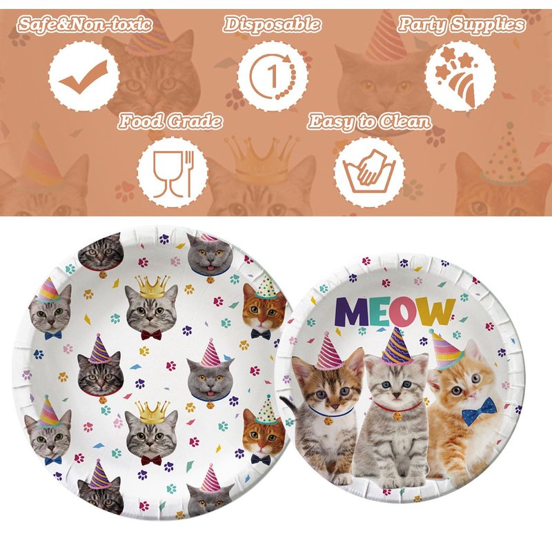 - 5.Rest assured with our guaranteed service - if you have any questions or are not satisfied with our cat party supplies, our customer service team is here to help. Create great memories with family and friends using our adorable cat plates and napkins set.