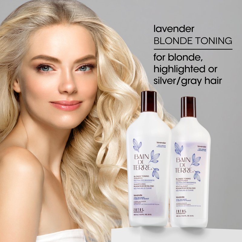 Bain de Terre Lavender Blonde Toning Shampoo, Neutralize Brassy Tones for Cool Blonde, Highlighted or Gray Hair, with Argan & Monoi Oils, Paraben-Free, Vegan, 13.5 Fl Oz