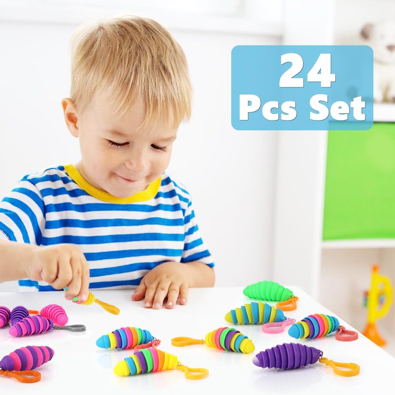 bairimeng 24 PCS Sensory Slug Toys, Articulated Stretch caterpillar toy, Anxiety Relief fidget Slug toy, Novelty Party Favors for Kids.