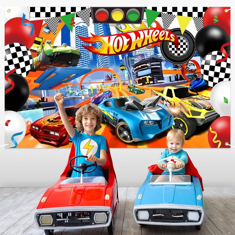 BAJCOHNG Hot Cars Birthday Banner Backdrop for Wheels Birthday PartyBackdrop,Race car Birthday Party Supplies,Race car Birthday Party Supplies,Birthday Party Background Banner (7x5ft)